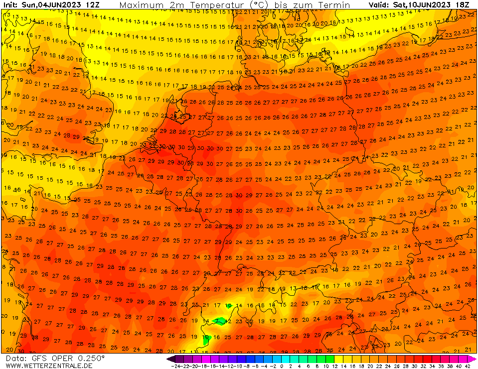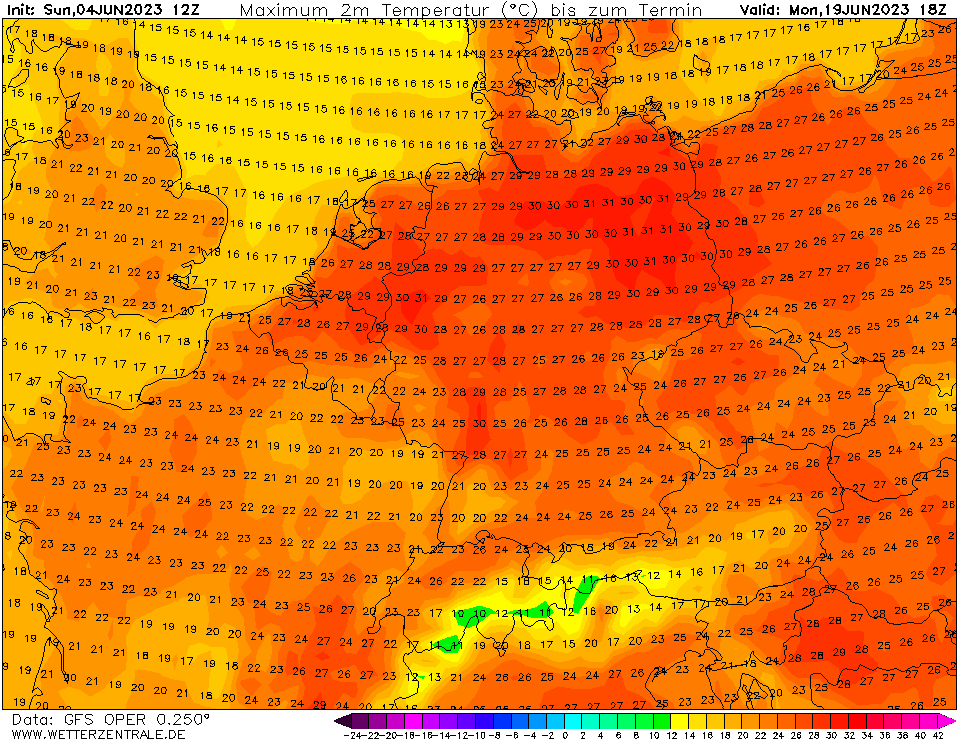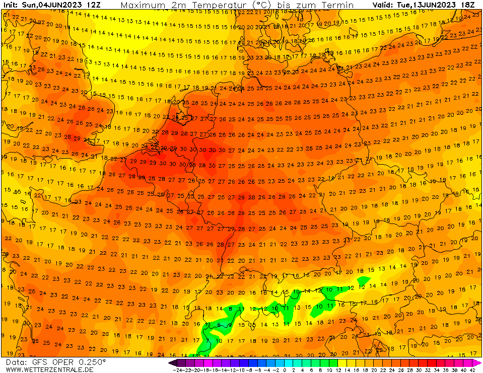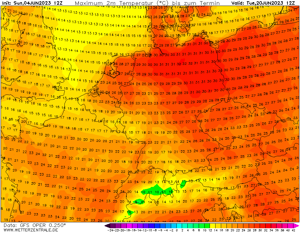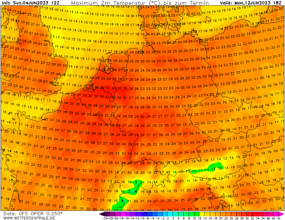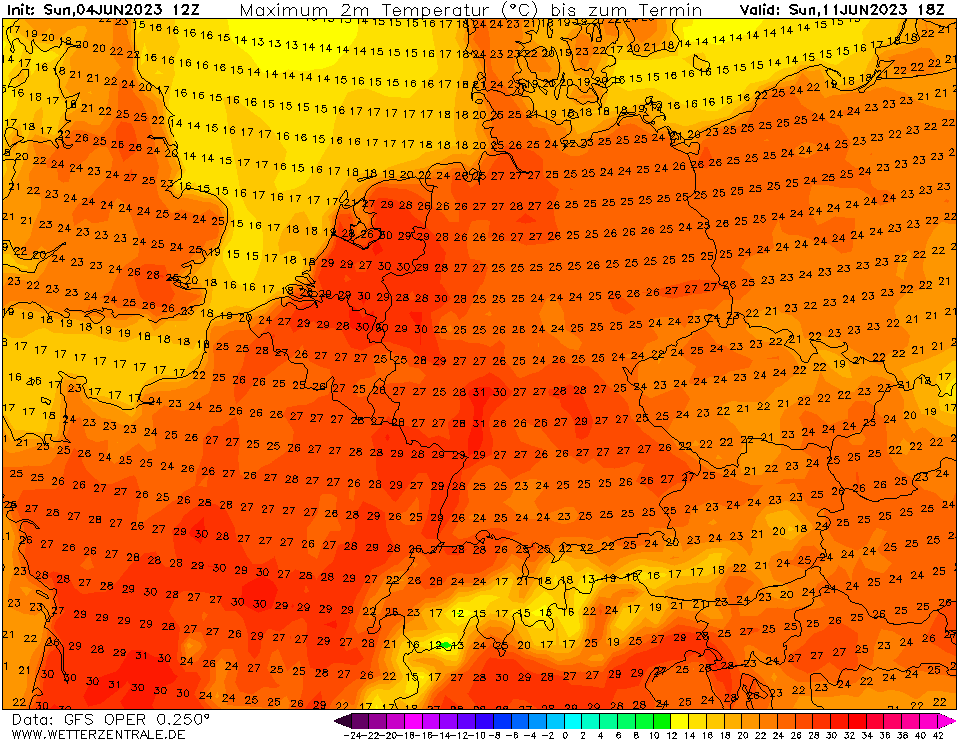 12 dagen op rij temperaturen van bijna 30°C landinwaarts (rekening houdend met een eventuele correctie).