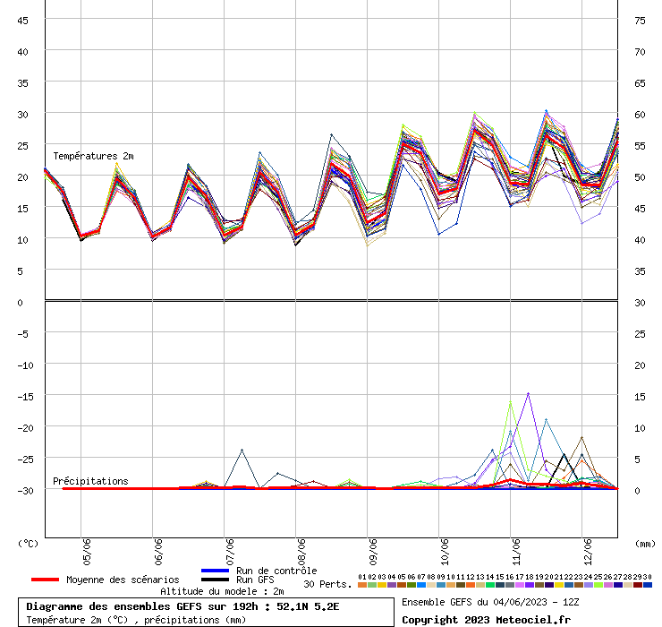 Ensemble GFS0412 - De Bilt: vrijwel droog, hogere Tx'en langduriger?