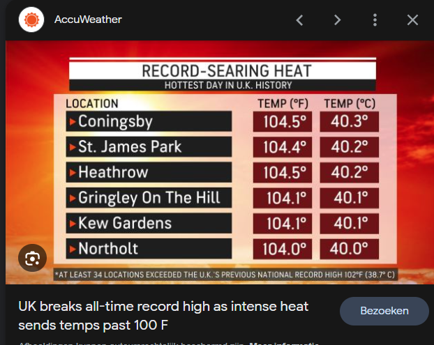 gewoon weer 40 graden. De 40 graden grens is een statistiek, Nicolas bedoelt extreme temperaturen richting de 40 graden. Of die 40 graden dan net wel of net niet gehaald wordt doet er dan niet heel veel toe toch?