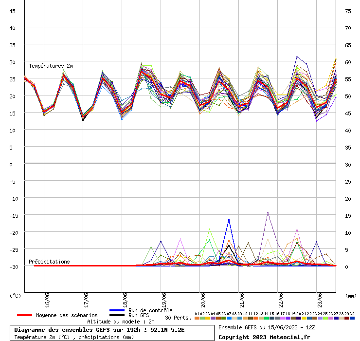 Ensemble GFS1512 - De Bilt: aanhoudend warm, buien tijdelijk?