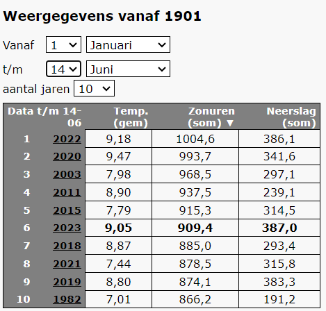 Ongekende hoeveelheid zonneschijn. 6e plek alweer.