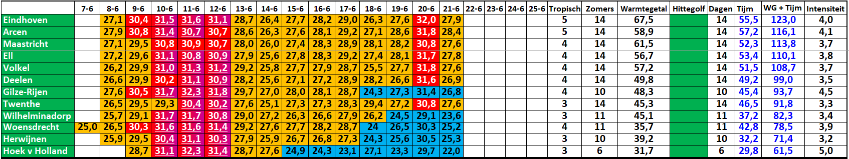 Hoek van Holland bovenaan als je kijkt naar intensiteit.