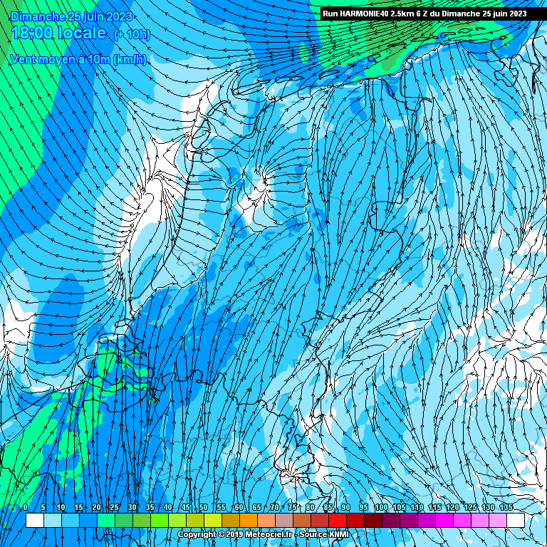 Vandaag heeft de zeewind volgens mij amper een serieuze invloed door het gebrek aan kracht. HARMONIE laat later vanavond zelfs de zuidenwind het weer overnemen.