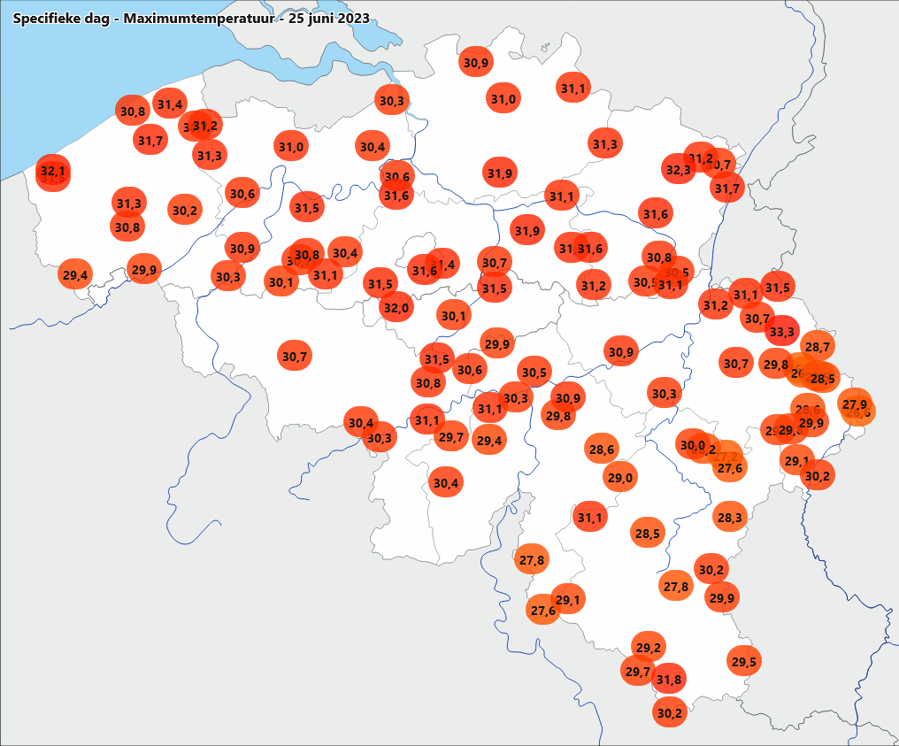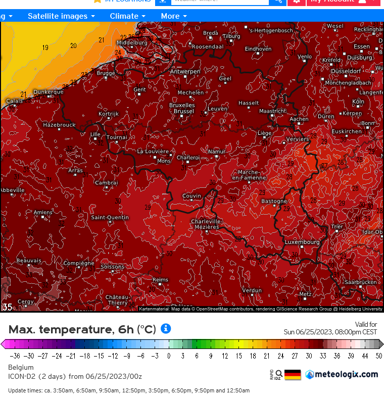 Jabbeke +31,7°C vrijwel in lijn met Icon-D2 die 31°C gaf voor hier. Actueel 19u30 +30,1°C.