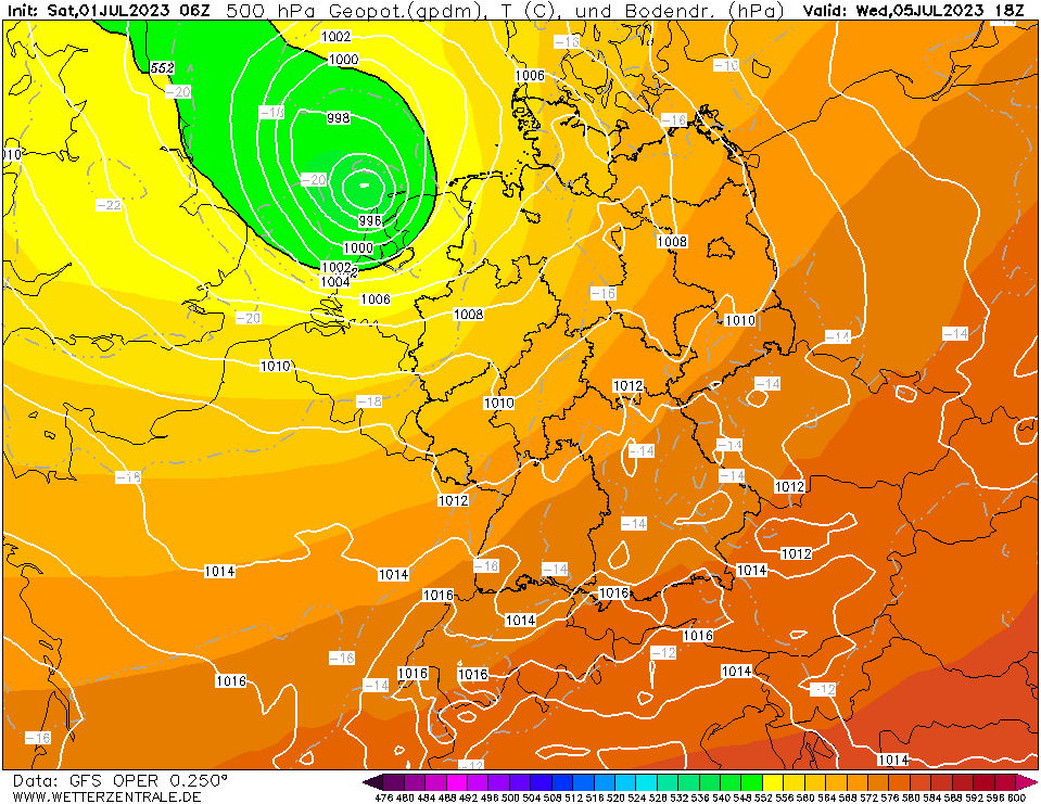 GFS 06Z komt op wo met een klein lagedrukgebied van 990 hPa