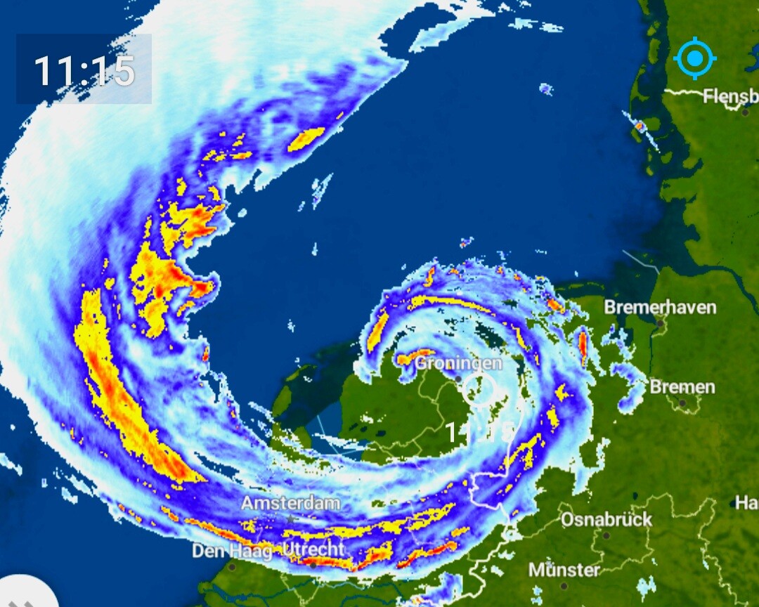 Wat een geweld hier. Grote takken breken af. Schatting +/- 90km/u