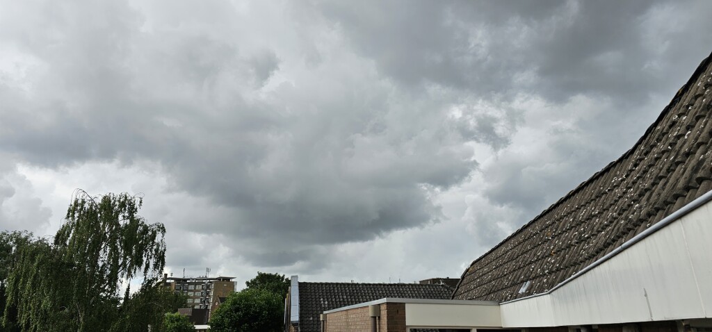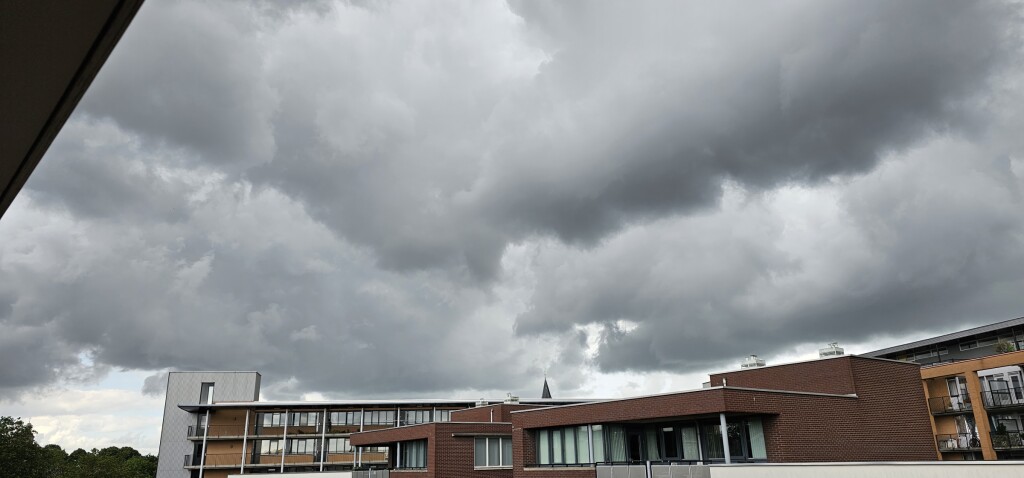Het gaat er om hangen waar deze bui heen trekt, de eerste druppels hier