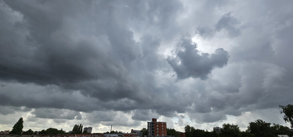 Hier uiteindelijk wel een licht buitje gehad, straat wat natgesprenkeld met kleine spetters...