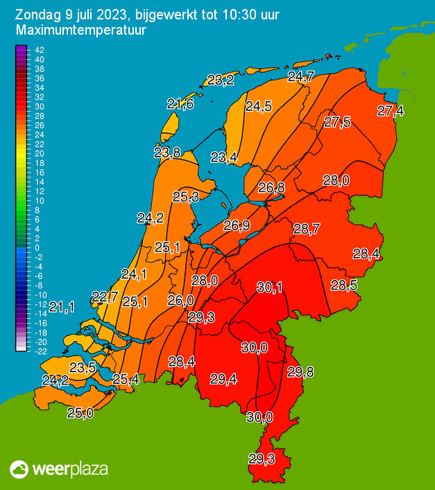 Tropisch warm om 10:30 op 3 stations