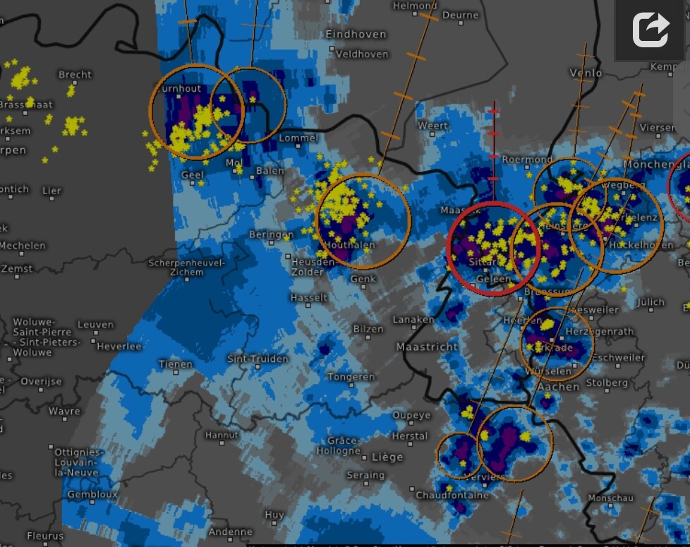 Onweersbuien ontwijken het gat van Limburg weer eens, alles trekt links en rechts voorbij terwijl de bui vanuit Genk recht op Bree afkwam.