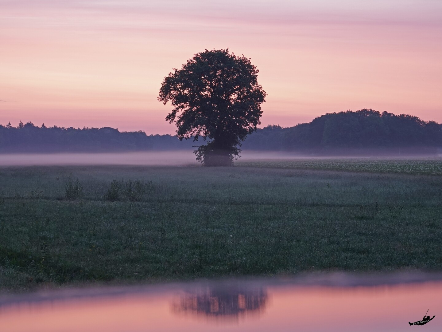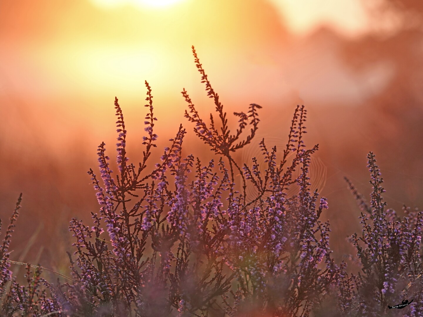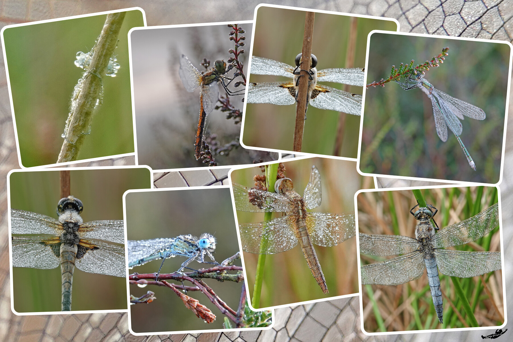Daarnaast was er nog even een mooie grondmist, met direct na zonsondergang opvallen veel soorten libellen en juffers gespot met pareltjes op hun lichaam. Tot mijn plezier bloeide de eerste struikheide ook al. Zie de serie hieronder.