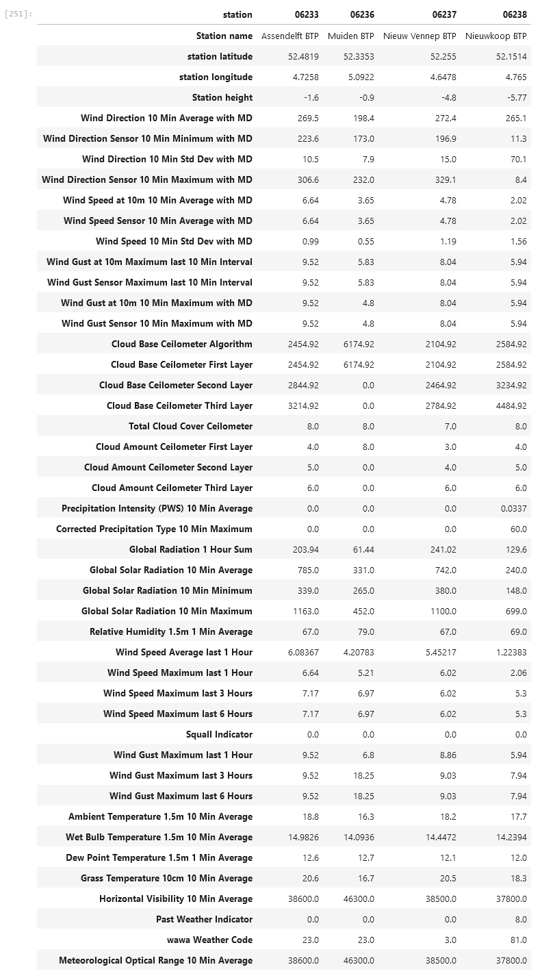 Sinds een paar dagen levert het KNMI ook data voor enkele (bestaande) stations waarvan ze dat voorheen niet deden. Voor parameters zoals temperatuur en luchtvochtigheid gaat dat om de vier mistposten rond Schiphol en het Noordzee platform Hollandse Kust Zuid Alpha (west van Zandvoort):
