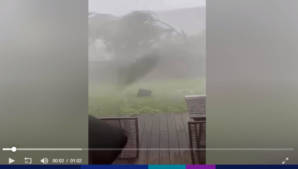 In dit nieuwsbericht zit een kort filmpje waarin extreme windstoten (mogelijk > 200 km/h) te zien zijn. Boompje op de achtergrond is zowat horizontaal. Gevonden via de melding op eswd.eu.