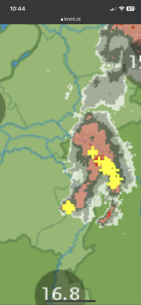 Dat was het weer voor vandaag? Wat jammer dat de buien zo weinig potent zijn. Als het dan toch niet zomert, dan graag wat spanning in de atmosfeer. Maar ook dat is teveel gevraagd. Straks weer zon? Zou fantastisch zijn. Opbrengst van de ‘buien’ 1 mm.