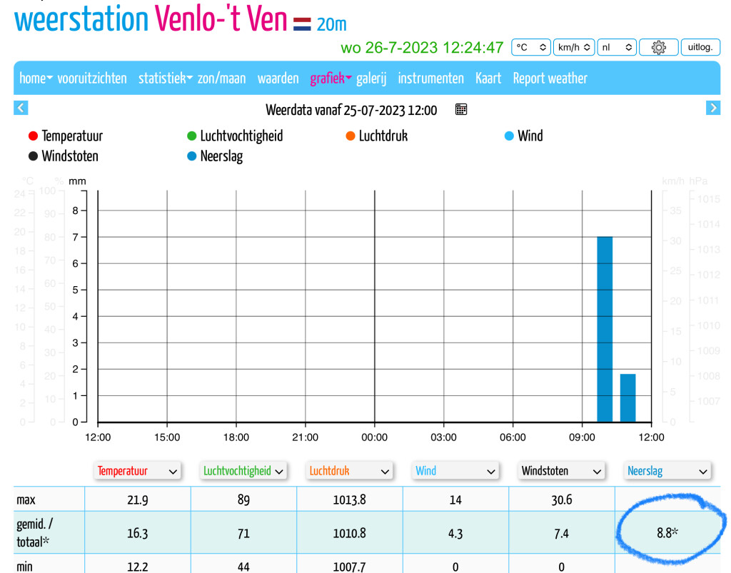 Top bui hier, onweer en slagregens, onderhand 12 mm…