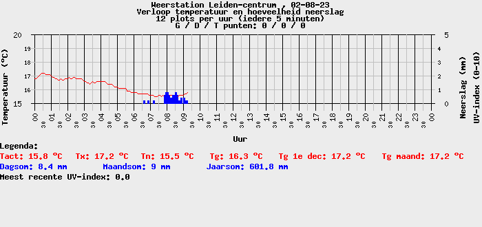 Het stelt hier weinig voor. Meest lichte regen en 1,2 mm