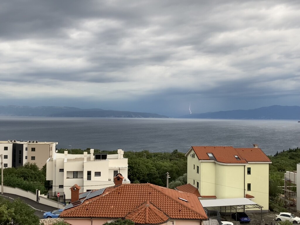 op de foto een langstrekkende onweersbui van vanmiddag met een ontlading boven eiland Cres.
