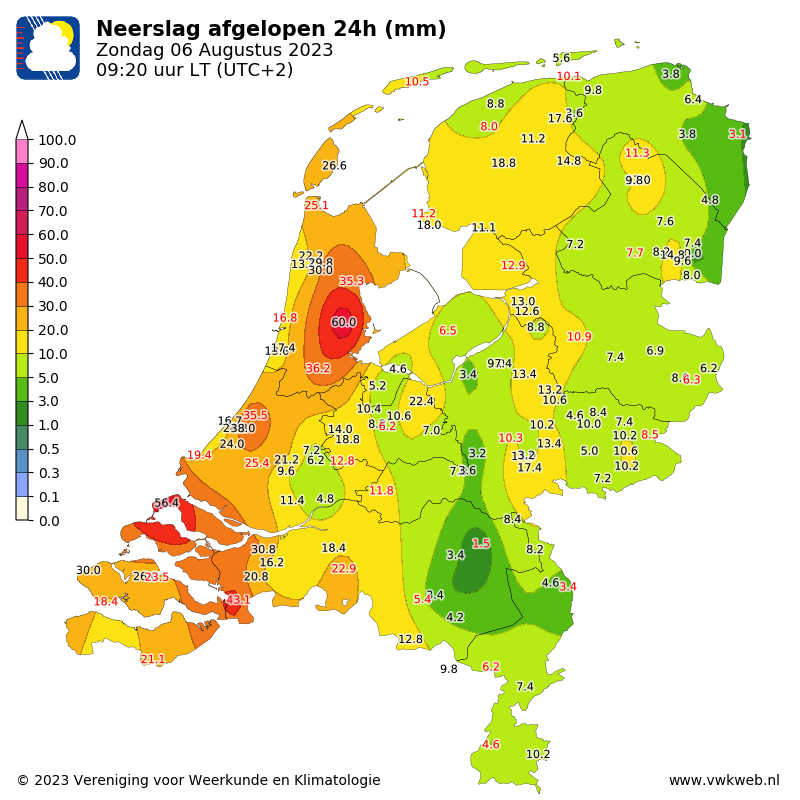 28.4 mm hier, regio Purmerend lokaal 100 mm