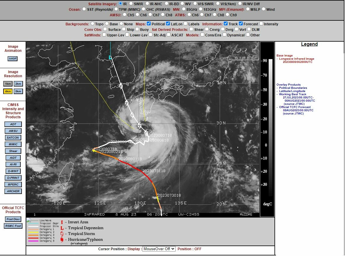 Heb je misschien ook meer info over de tyfoon die naar Zuid-Korea trekt. En volgens mij ook een andere richting Tokio?