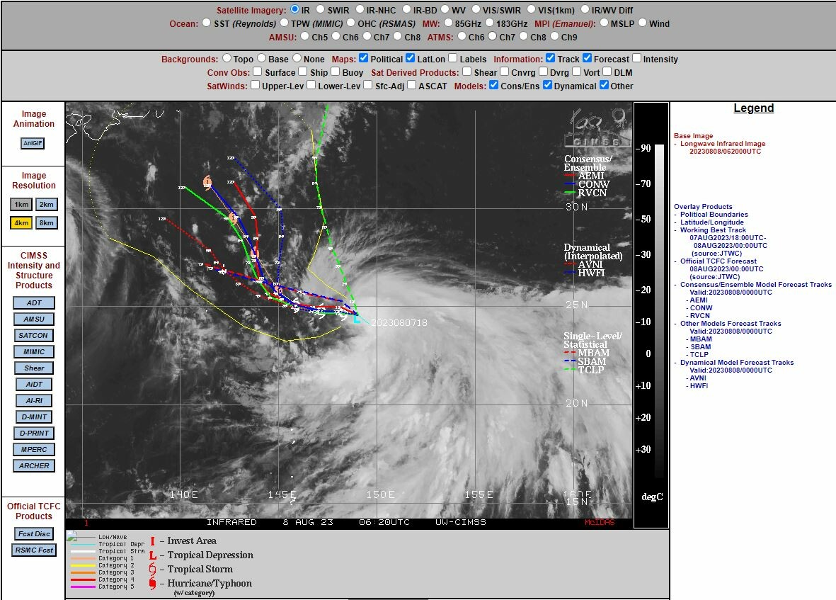 Die trekt als storm richting Korea is nu de verwachting. Gelukkig dus niks extreems, maar genoeg om de wereld Jamboree helemaal te stoppen. Wat een bizarre koers heeft die al afgelegd. In Tokyo zullen ze er weinig van merken denk ik. Dat is te noordelijk.