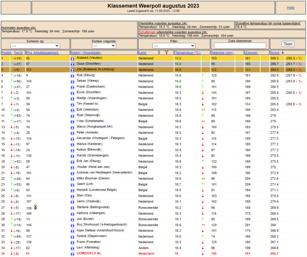 Tussenstand Weerpoll aug '23 t/m 10-08