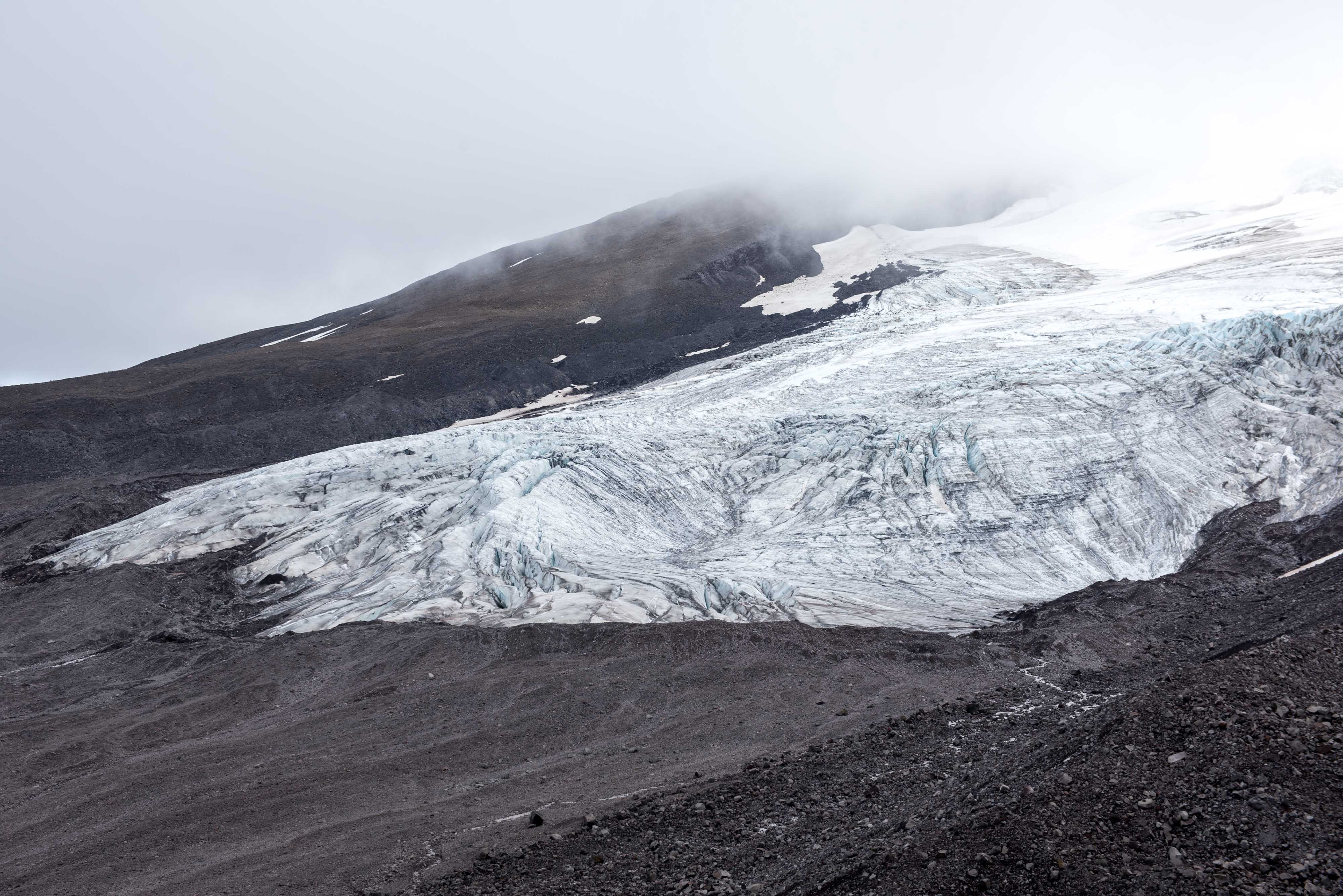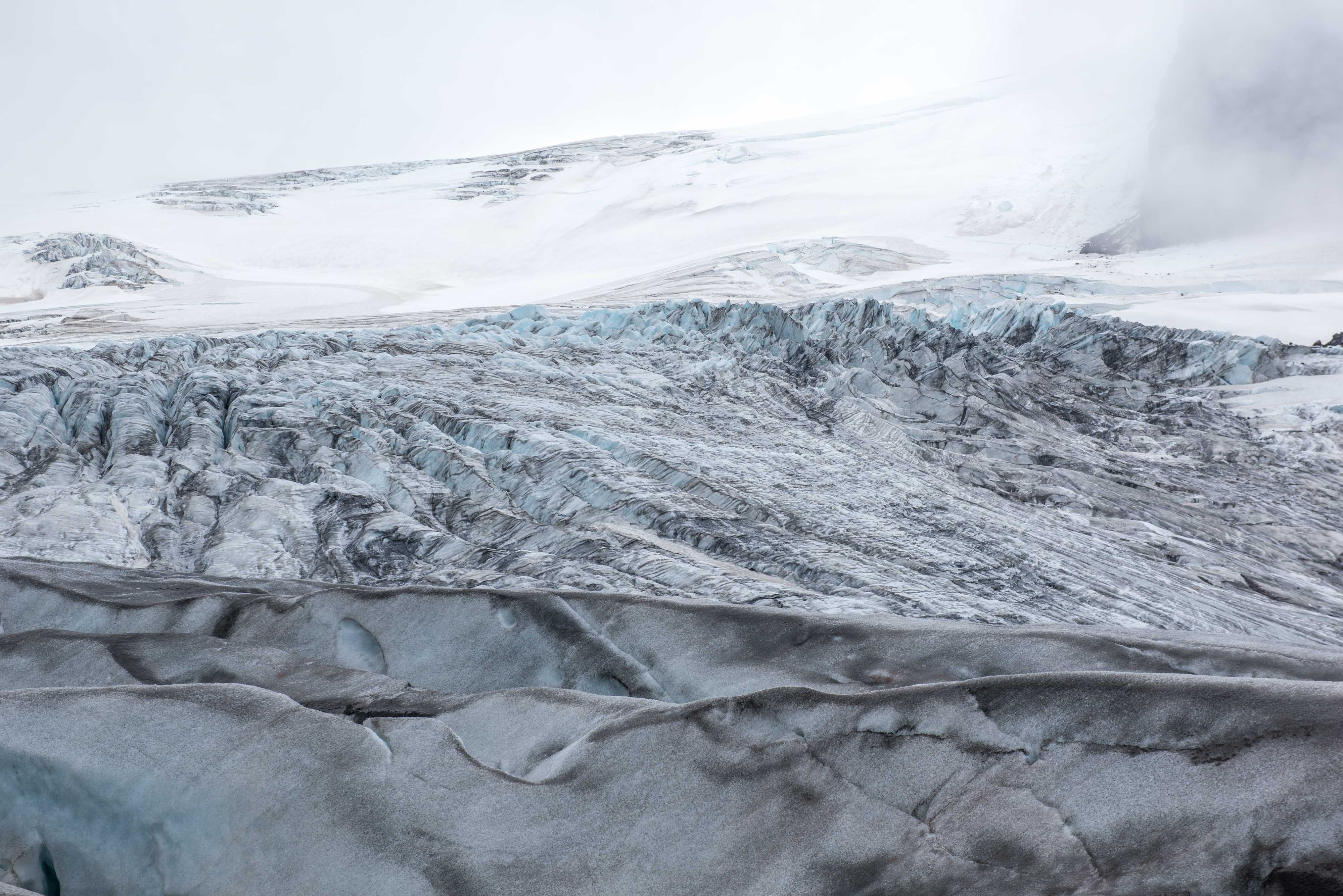 Na een paar weken stilte mijnerzijds, toch weer een gletsjerbijdrage. Het weer werkte die dag overigens niet mee: romdom niets dan zon, maar de berg hulde zich in wolken met geregeld regen.