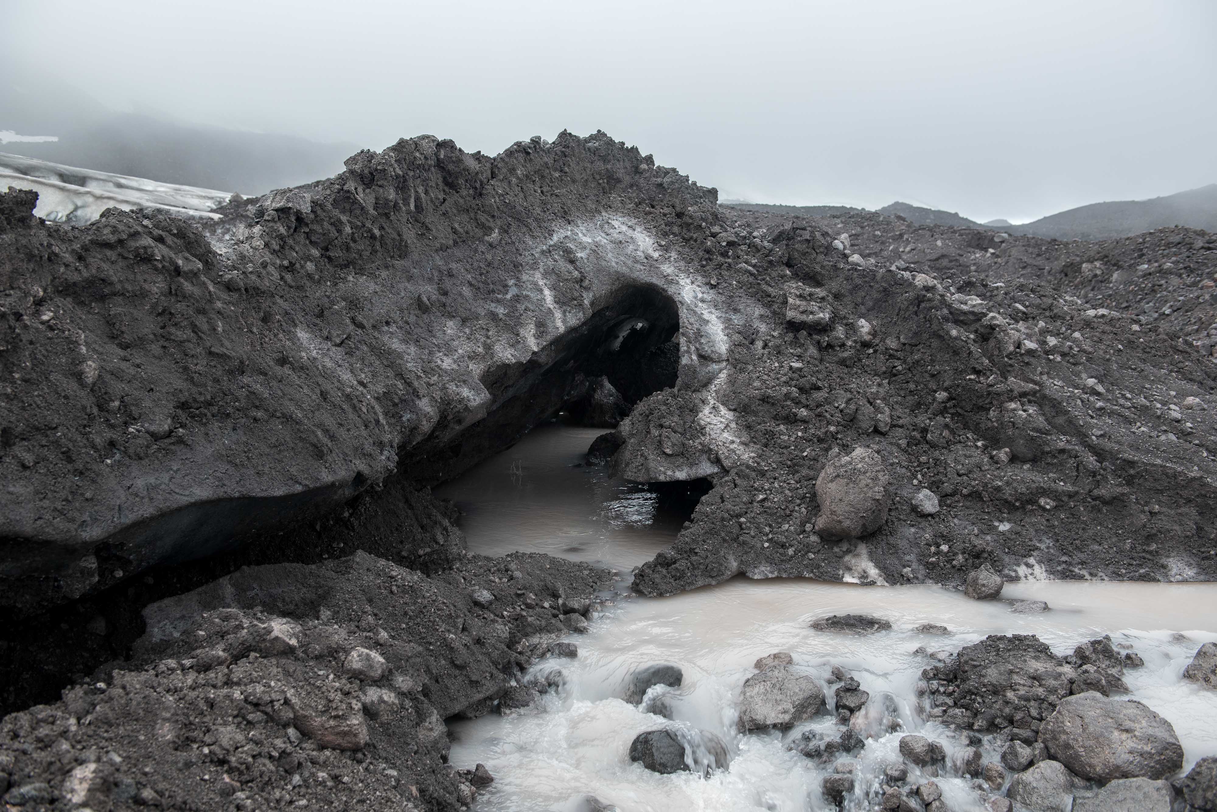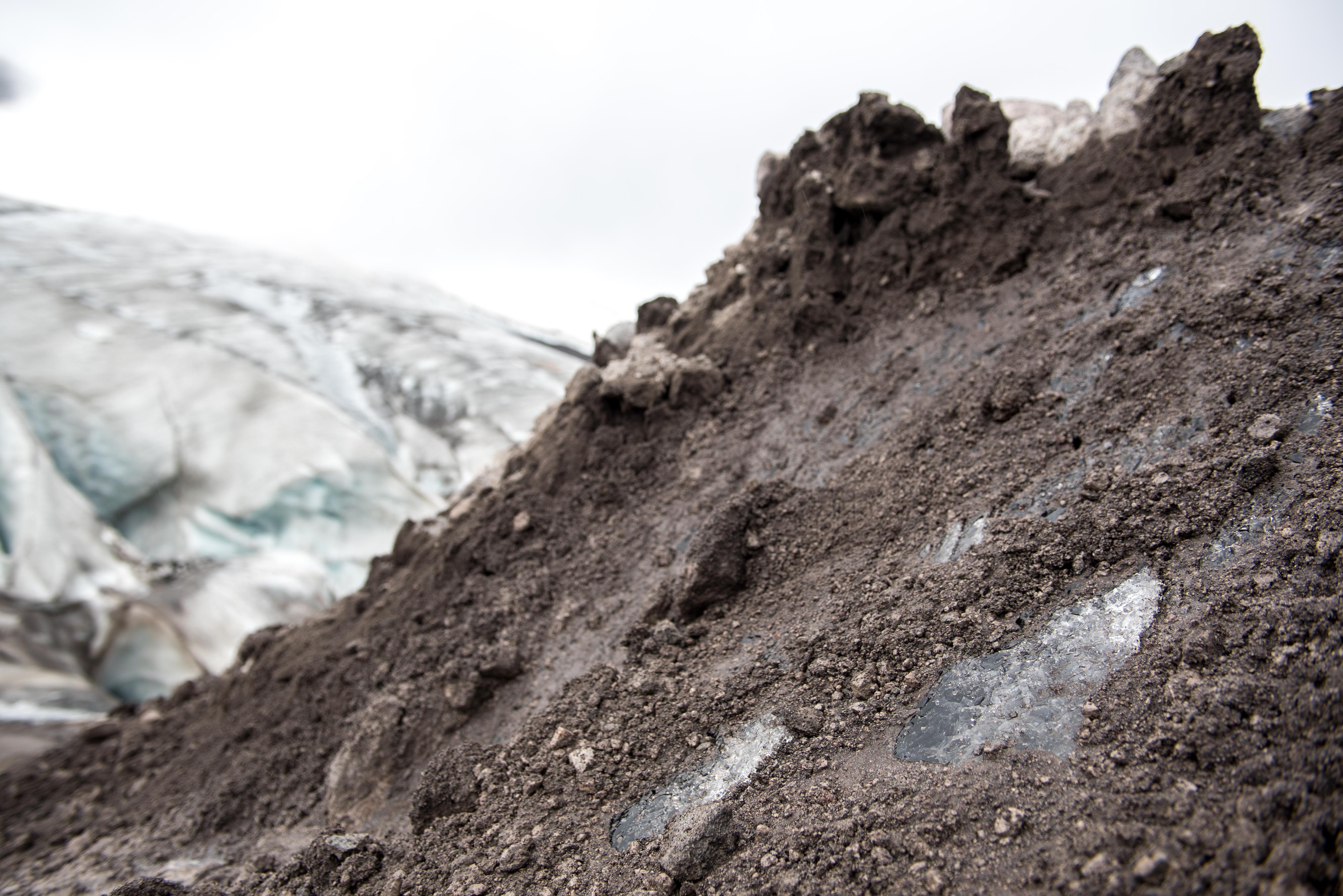 De overgang van ijs naar land is veel minder scherp dan foto's doen vermoeden. Onder de hoopjes zand gaat bijna altijd ijs schuil, dat profiteert van de isolatie die het zand en de steentjes bieden. Bovendien creëert een groeiende gletsjer nog meer chaos door het ijs zowel in als over de steenmassa in het voorland te duwen.