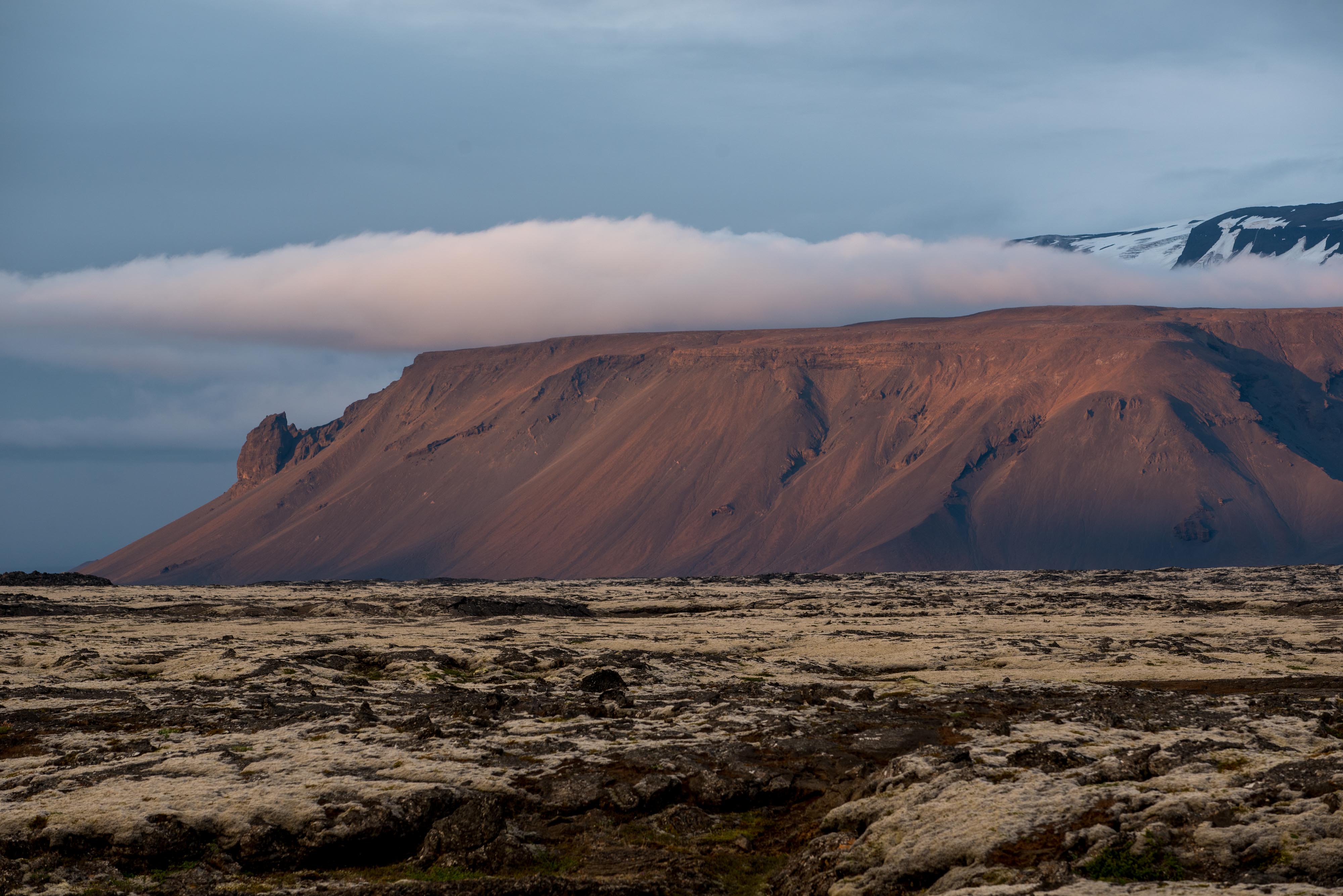 Onder: Eiríksjökull met steile hellingen in het avondlicht, juli 2023.
