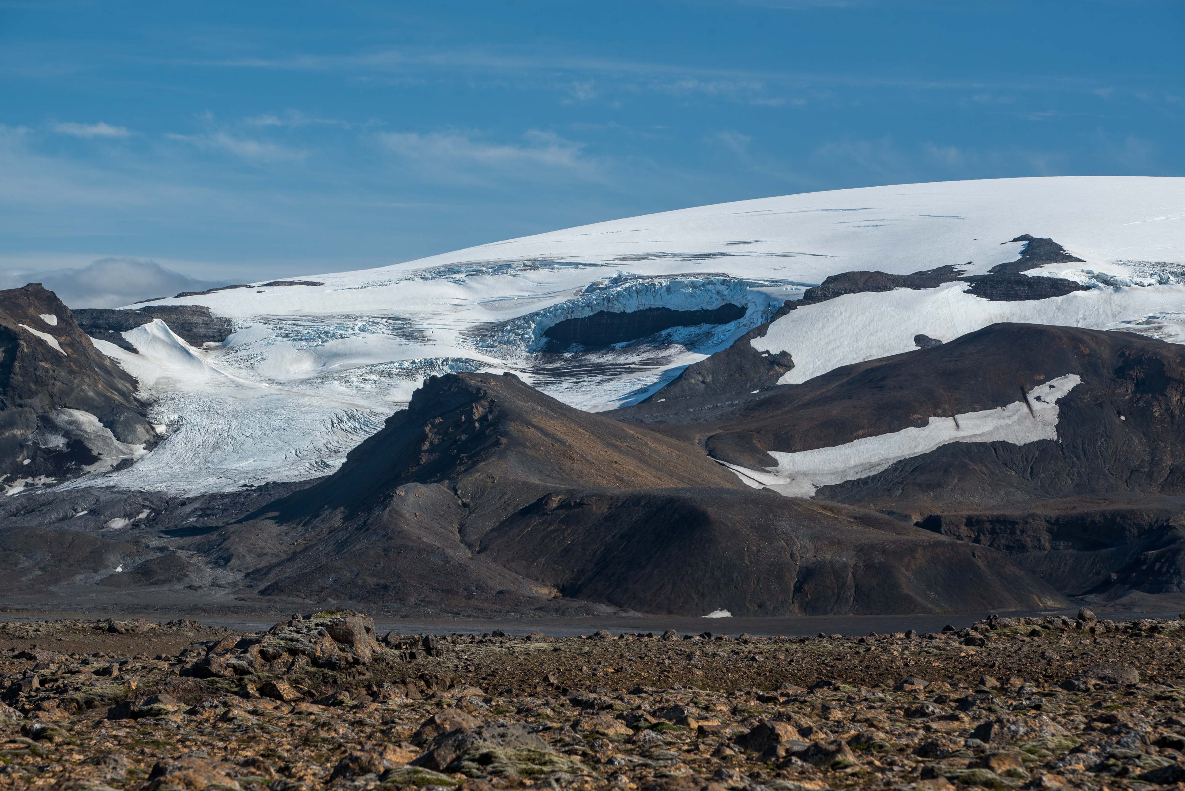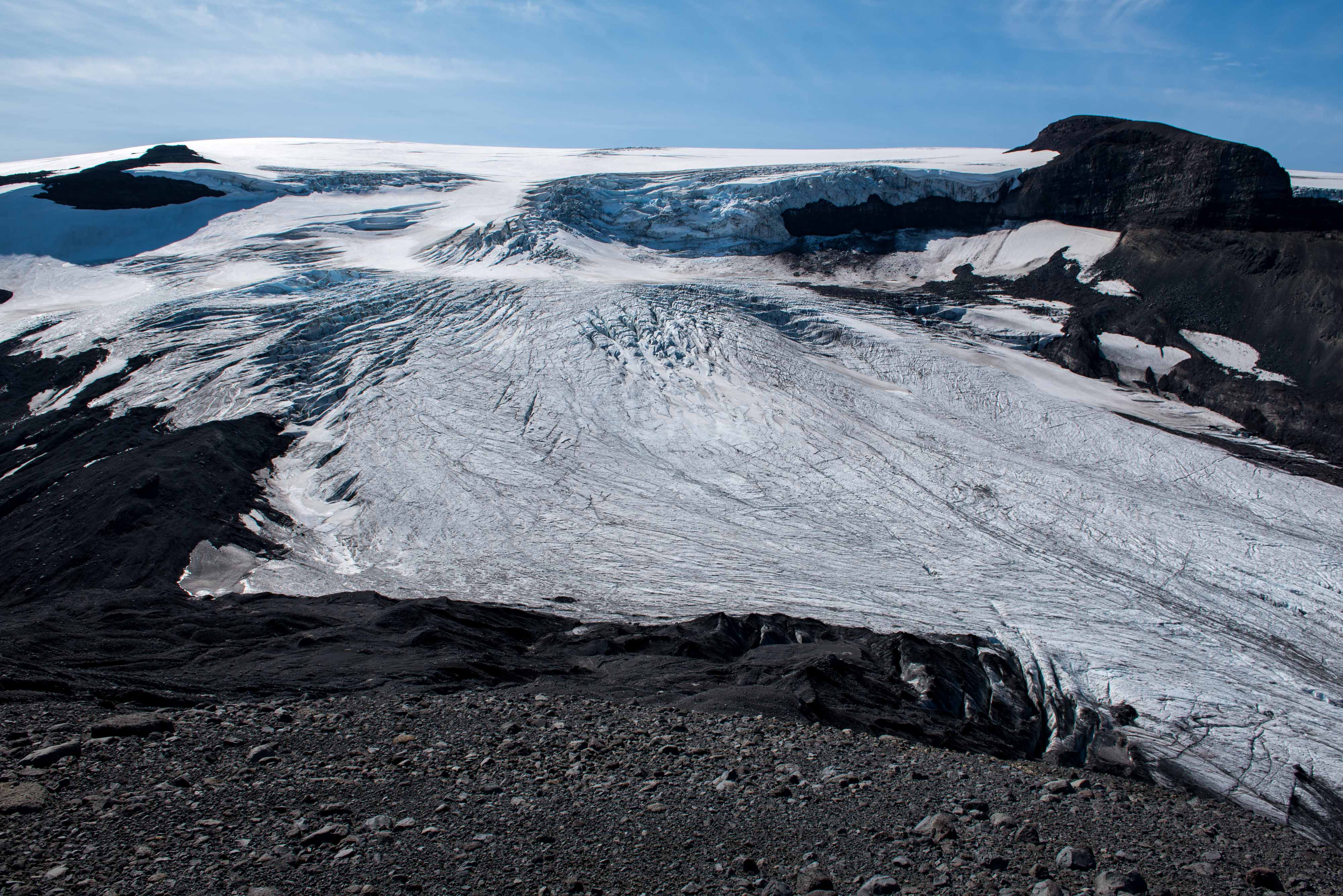 Onder: De westelijke uitloper van Þorisjökull met de Ok op de achtergrond, juli 2023.