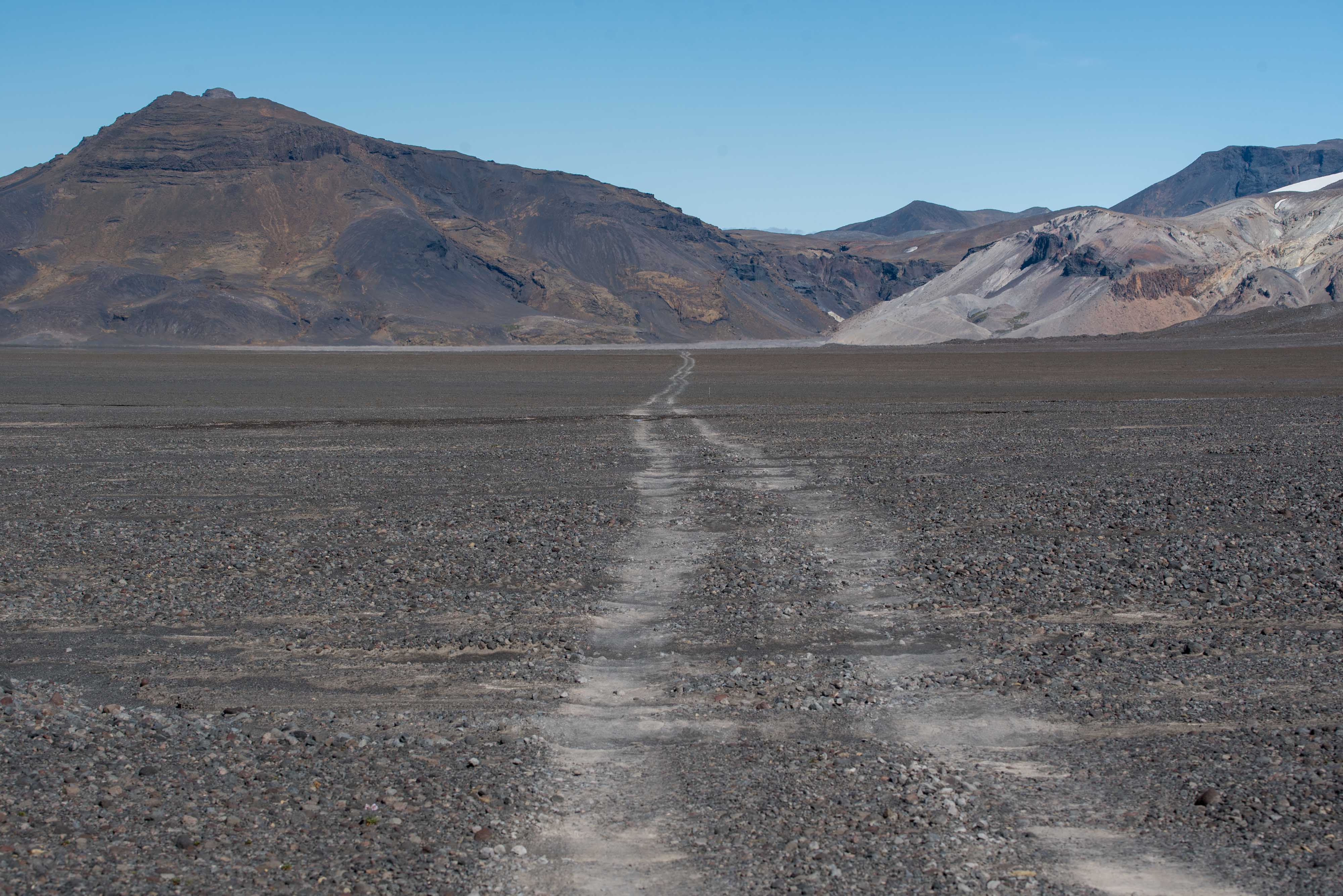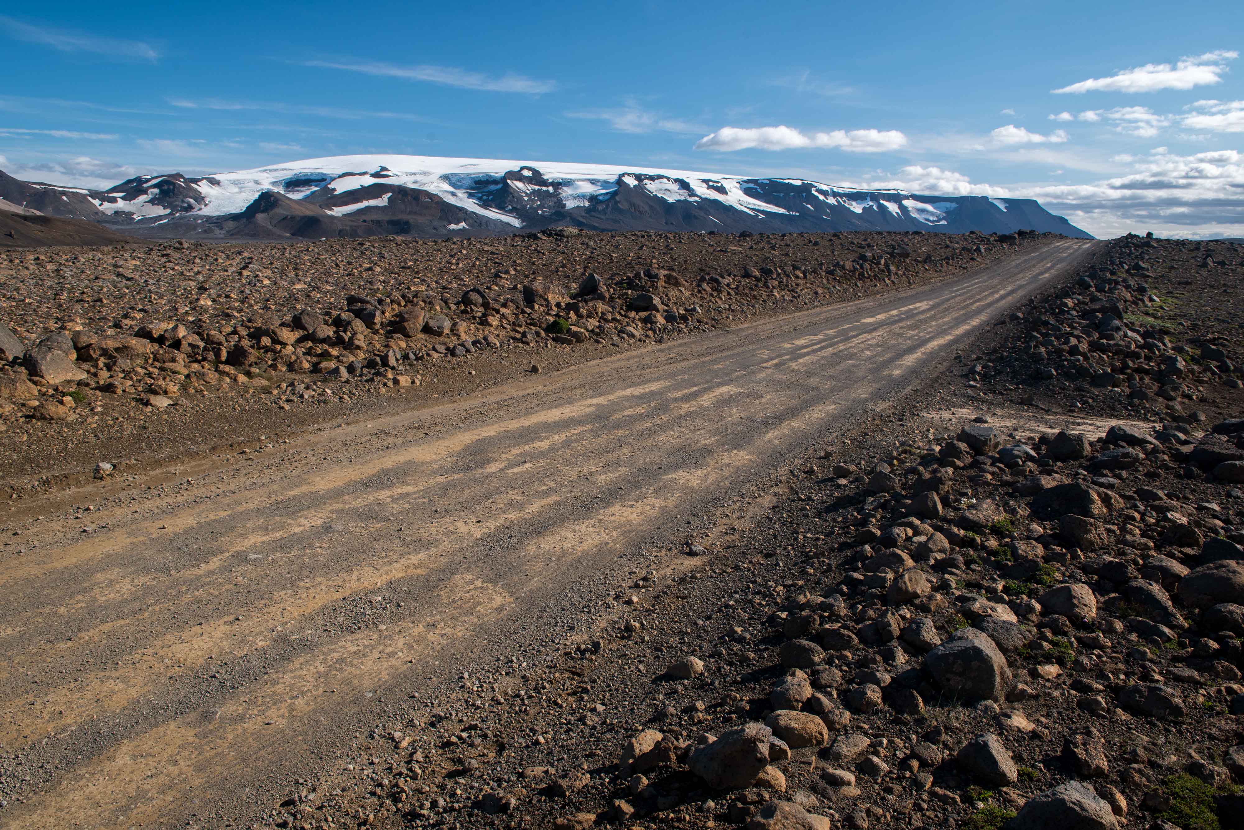 Onder: Kaldadalsvegur (weg F550) met op de achtergrond de Þorisjökull, juli 2023.
