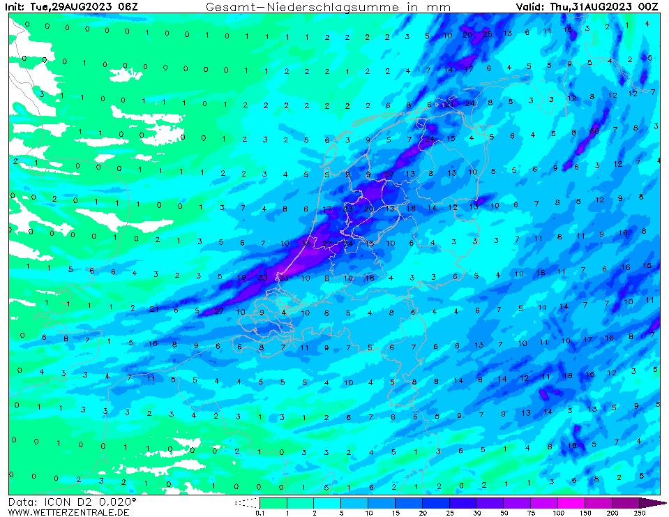 Inderdaad jammer dat de modellerie op het laatste moment alles weer afbouwt. Ter illustratie hieronder ICON-D2 06Z van gisteren en ICON-D2 03Z van vanmorgen.