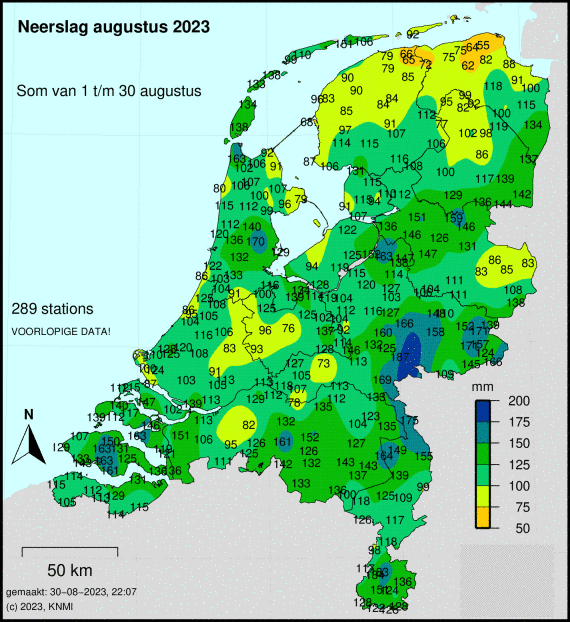 Ter illustratie, een kurkdroge bodem, met een veldcapaciteit van 0.3 cm3/cm3 kan over een diepte van 50cm volledig gevuld worden met 150mm neerslag (0.3 * 500 mm = 150mm).
