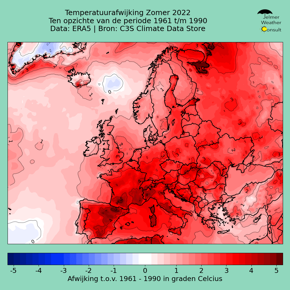 Dat past natuurlijk ook volledig in het beeld van klimaatverandering. Koele dagen blijven ook de komende decennia mogelijk. De kans erop neemt echter wel steeds verder af, net als de intensiteit van de lage temperaturen. En is het dan een keer écht koel in de Benelux, dan is de kans zeer groot dat het elders in Europa wel (zeer) warm is. Daarbij was 1976 voor toen natuurlijk een geweldige uitzondering, terwijl we tegenwoordig van 'geluk' moeten spreken wil de gemiddelde zomertemperatuur er niet bij in de buurt komen.