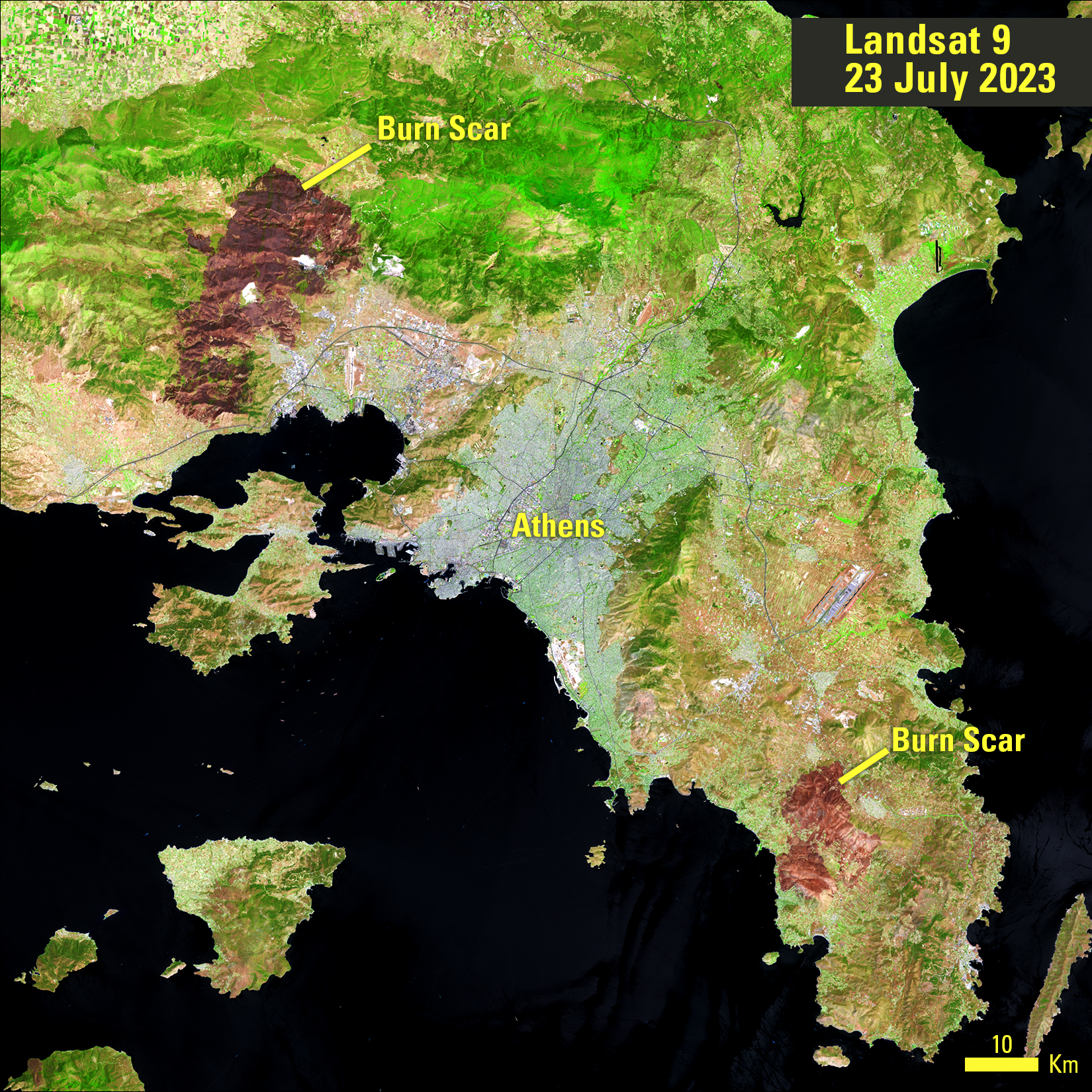 Deze kaartjes letterlijk nemende lijkt het afgebrande stuk west van Athene (Dervenochoria) enigszins gespaard te worden. Het NW bij Alexandroupoli evenzo.
