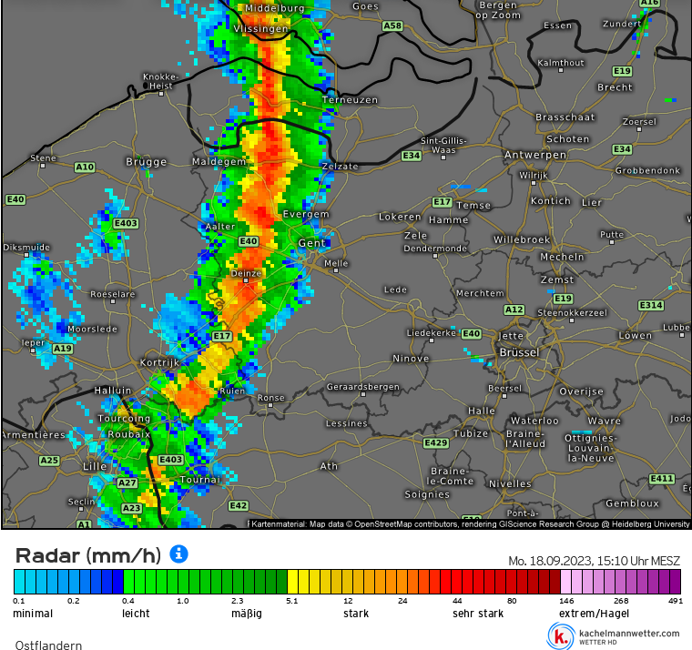 In Gent 7mm neerslag op een 10-tal minuten tijd