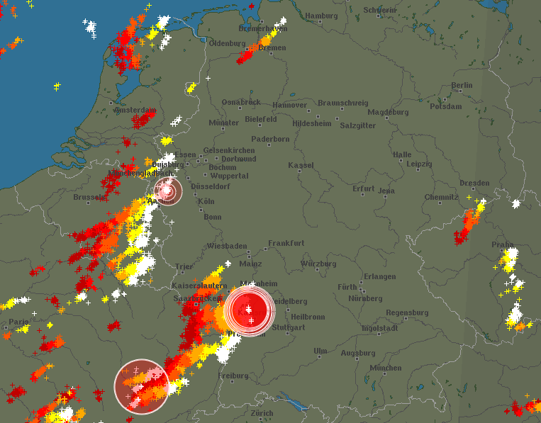 Dat is al meer dan ik verwacht had. De lucht werd geel. Rare 'pruttelende' donders daarbij.