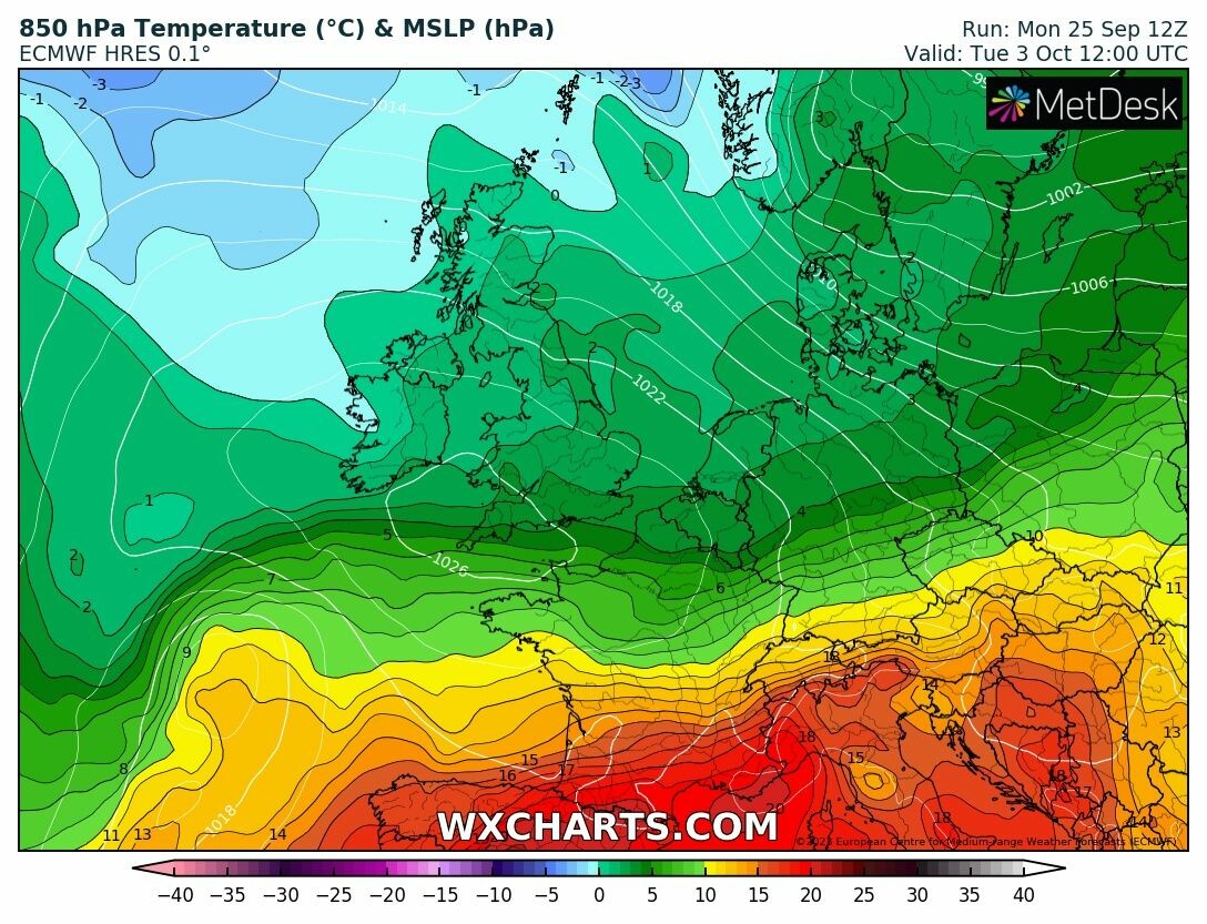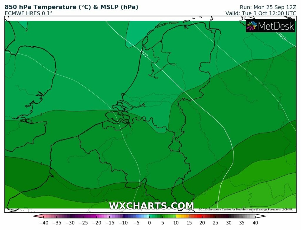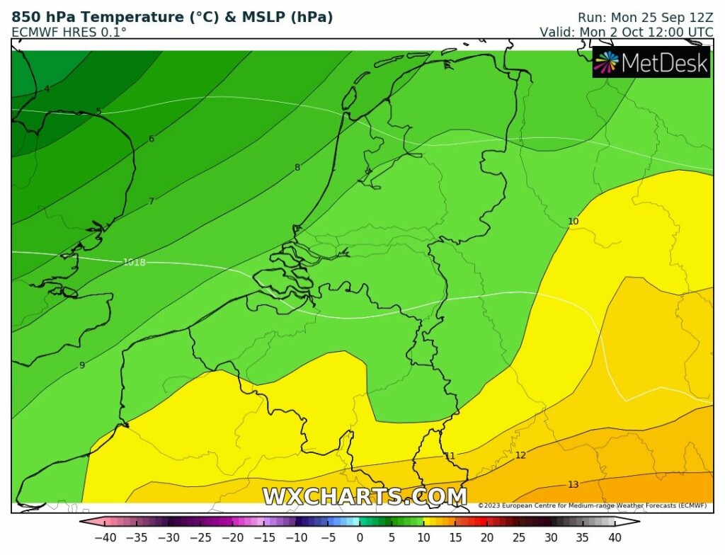 EC-oper. T/m donderdag prachtig herfstweer. Vrijdag wat buitjes/buien