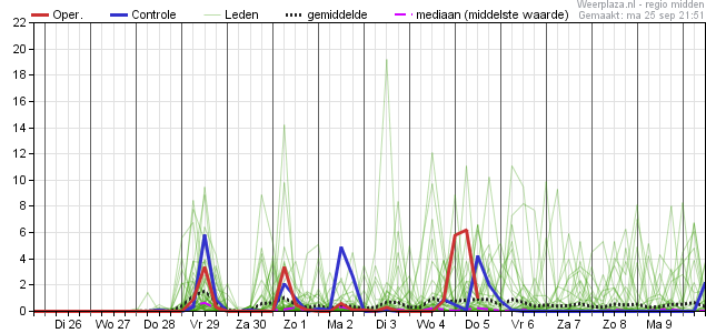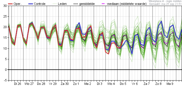 EC-oper. T/m donderdag prachtig herfstweer. Vrijdag wat buitjes/buien