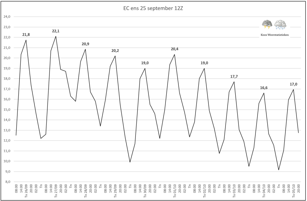 Normale Tn voor de eerste decade van oktober ligt tussen 7 en 9 °C