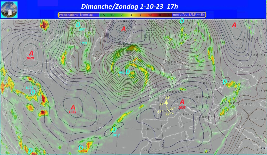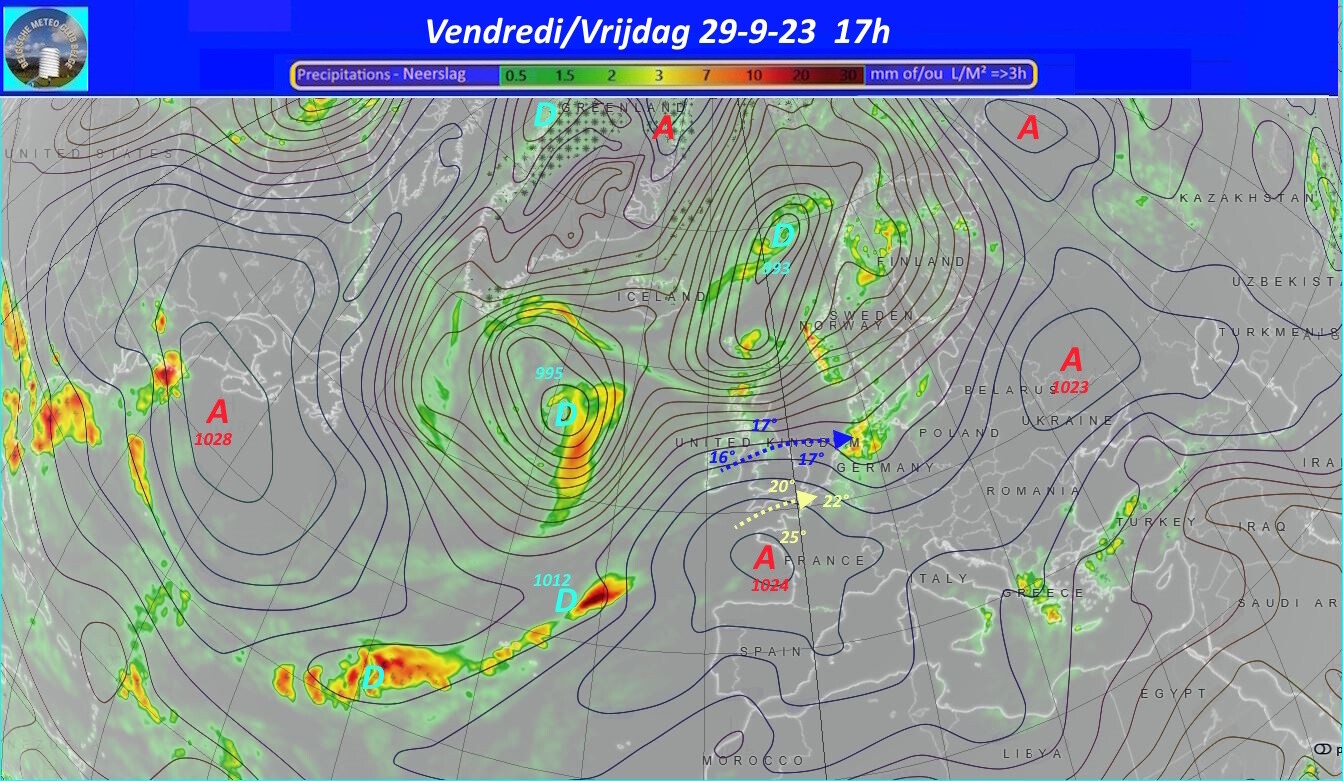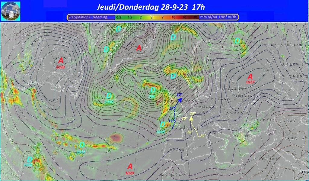 La dépression de forte tempête "Agnes" qui se dirigera mercredi de l'océan vers l'Irlande et l'Ecosse ne nous affectera pas directement mais sont front froid (peu actif) sera suivi jeudi et vendredi d'un air maritime un peu moins doux.