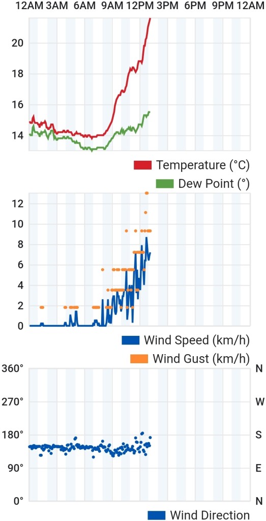 Hier ook een lekker temperatuurtje bij weinig wind en wat sluierbewolking.