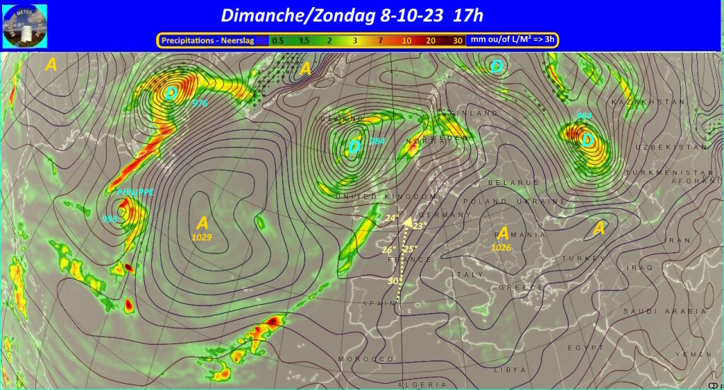 Ce dernier se déplacera en fin de semaine et le weekend prochain vers le nord de la France, les Alpes et le nord des Balkans nous maintenant dans un air stable qui redeviendra graduellement à nouveau très doux ou même assez chaud