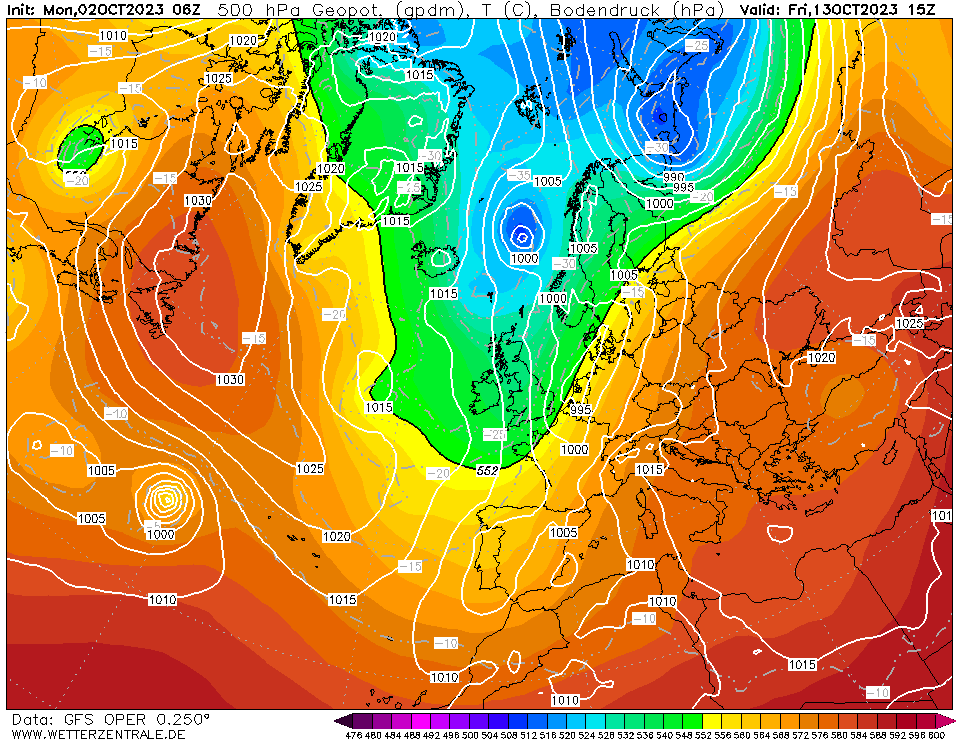 GFS op ULT: In 2 dagen van lokaal 25°C naar winterse neerslag Ardennen