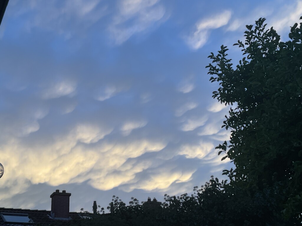 Zon schijnt tegen mammatus aan.