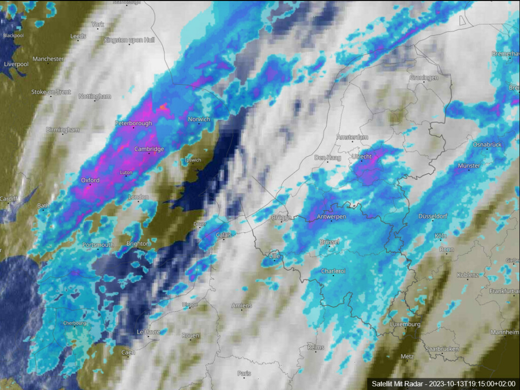 Er komt wel wat, maar dat ligt nu nog boven Engeland. Er lijkt een slagje in het front te zitten, zodat het wat later komt dan eerst berekend.
