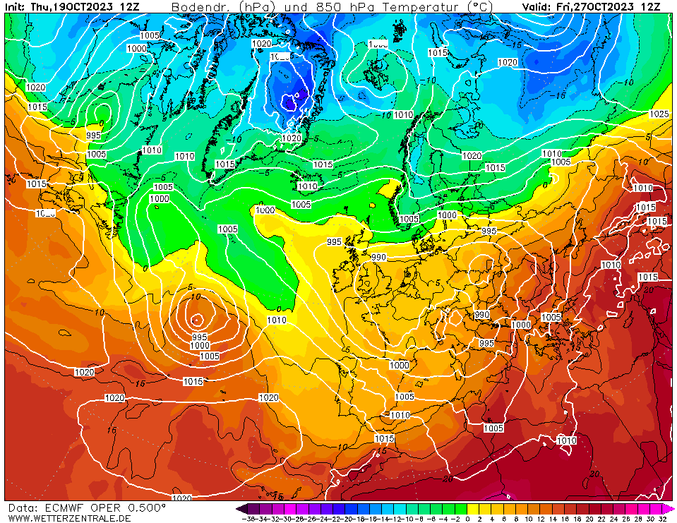 . Denk een (zwakke) westcirculatie hierna, noordelijk hoog oogt erg fragiel en er staat een laagje te trappelen op de oceaan om ons in een zuidwester te zetten. Vorige run had een vrij koud vervolg met een hoog in het Verboden Gebied.