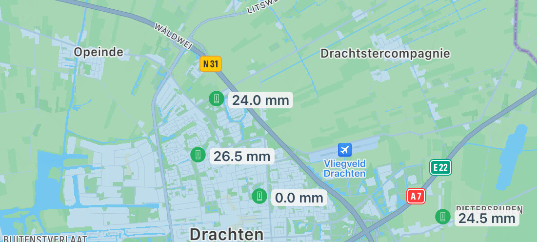 Rondje neerslag? Zwolle-Westenholte meldt 21.8 mm