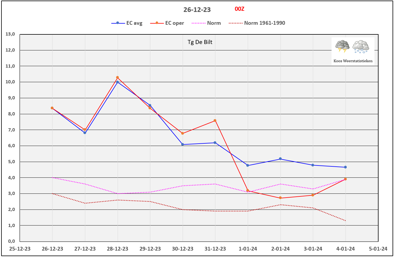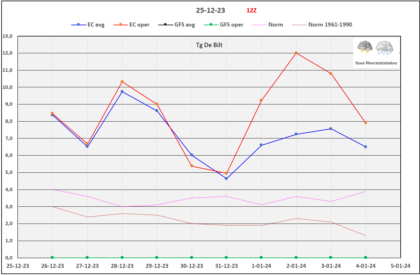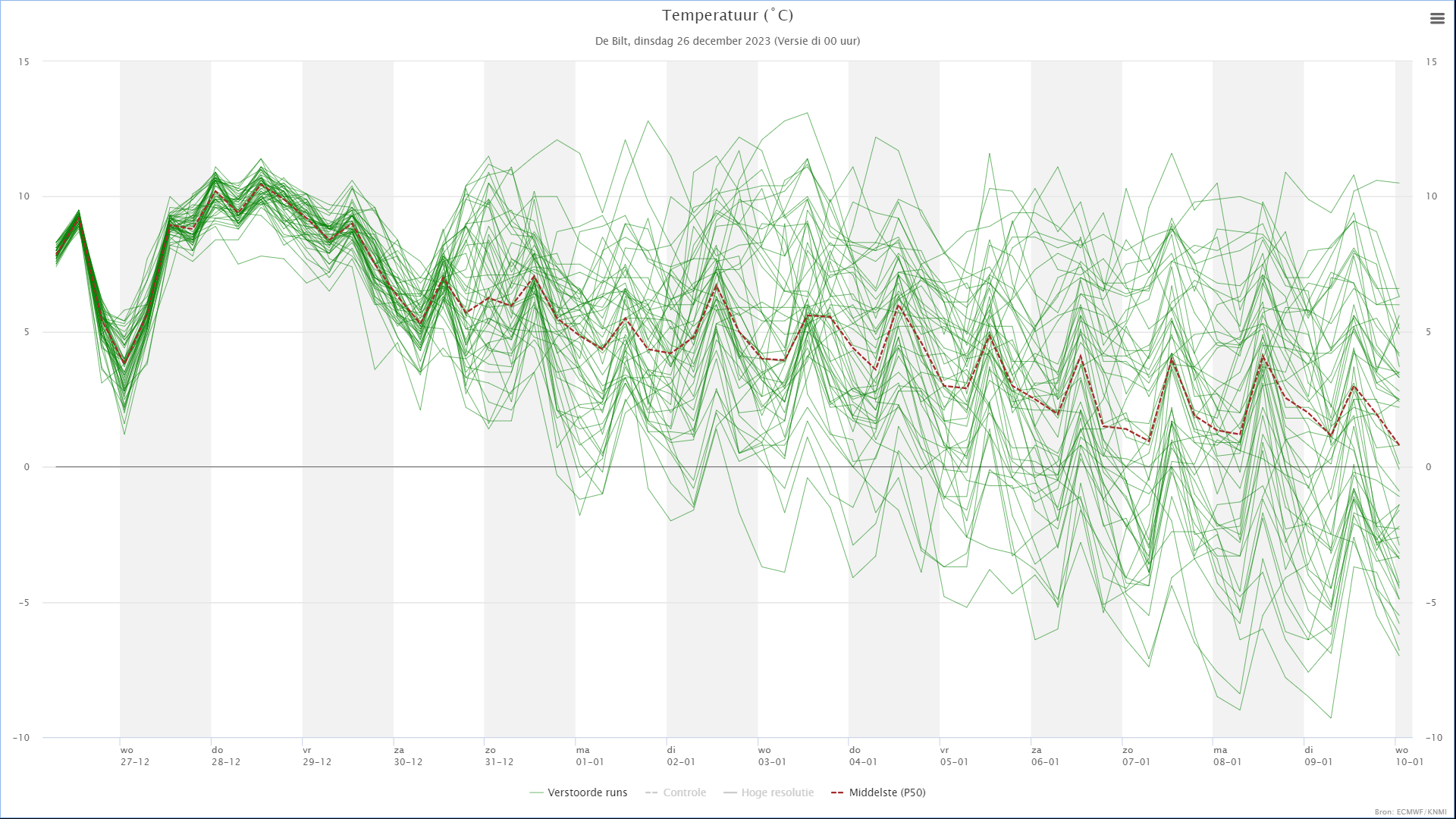 Wel een stuk afgekoeld. Oper meer dan 2 °C de komende 10 dagen.