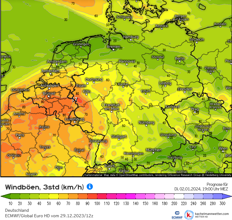 Dat ziet er toch redelijk fors uit voor het binnenland. Wel vooral in Belgie in deze run.