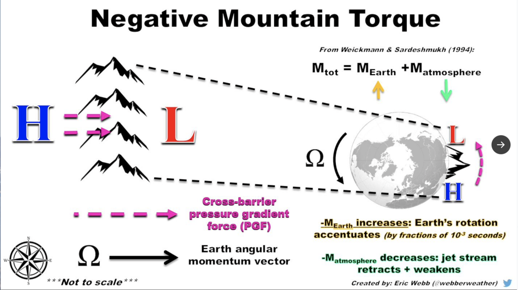 Deze materie van bv. bergketens die via allerlei mechanismen de stratosfeer kunnen verstoren in zijn normale functioneren doet mij denken aan de zogezegde 'Mountain Torques' (MT) van de Global Wind Oscillation (GWO).